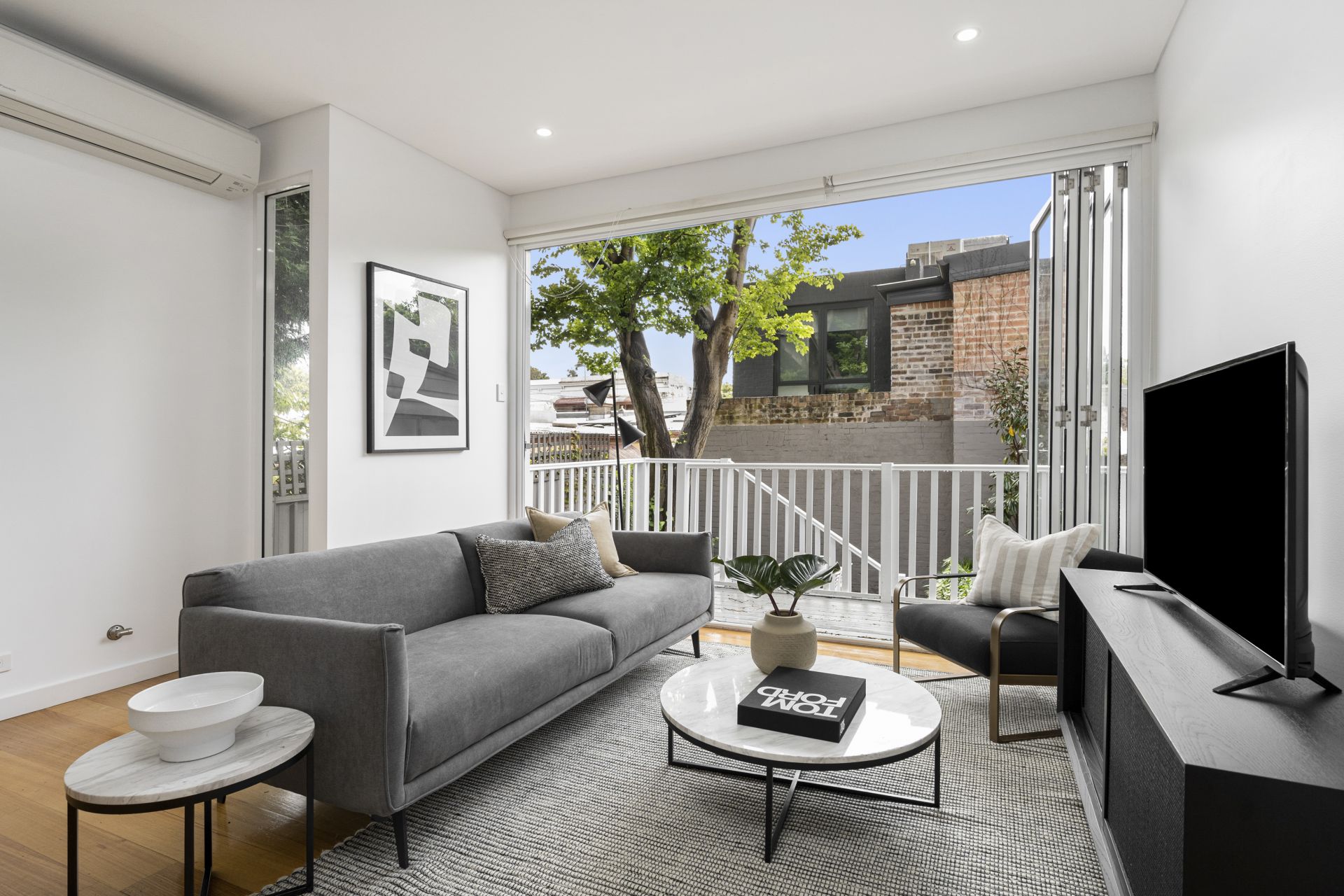 – Air conditioning throughout, gas heating, video intercom, skylights