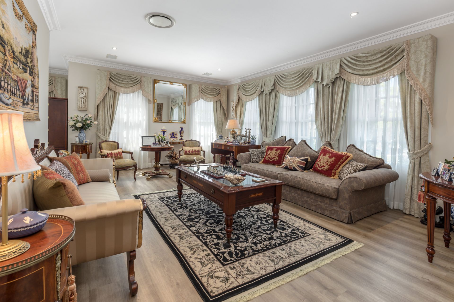 • Luxurious, oversize primary bedroom with his and hers walk-in and ensuite