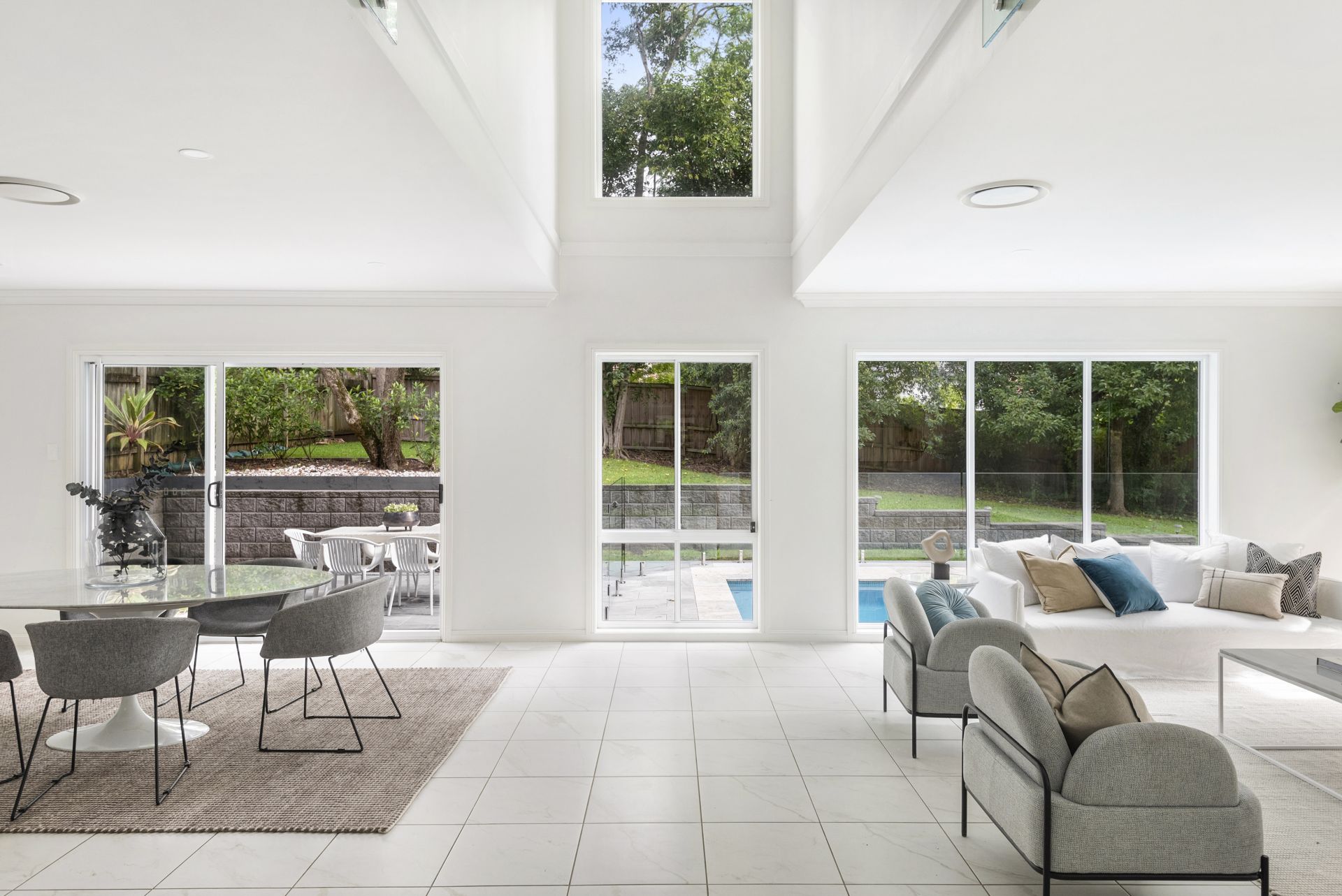 This designer residence is nestled on a superb, private and garden block at the end of a tightly held cul-de-sac.
