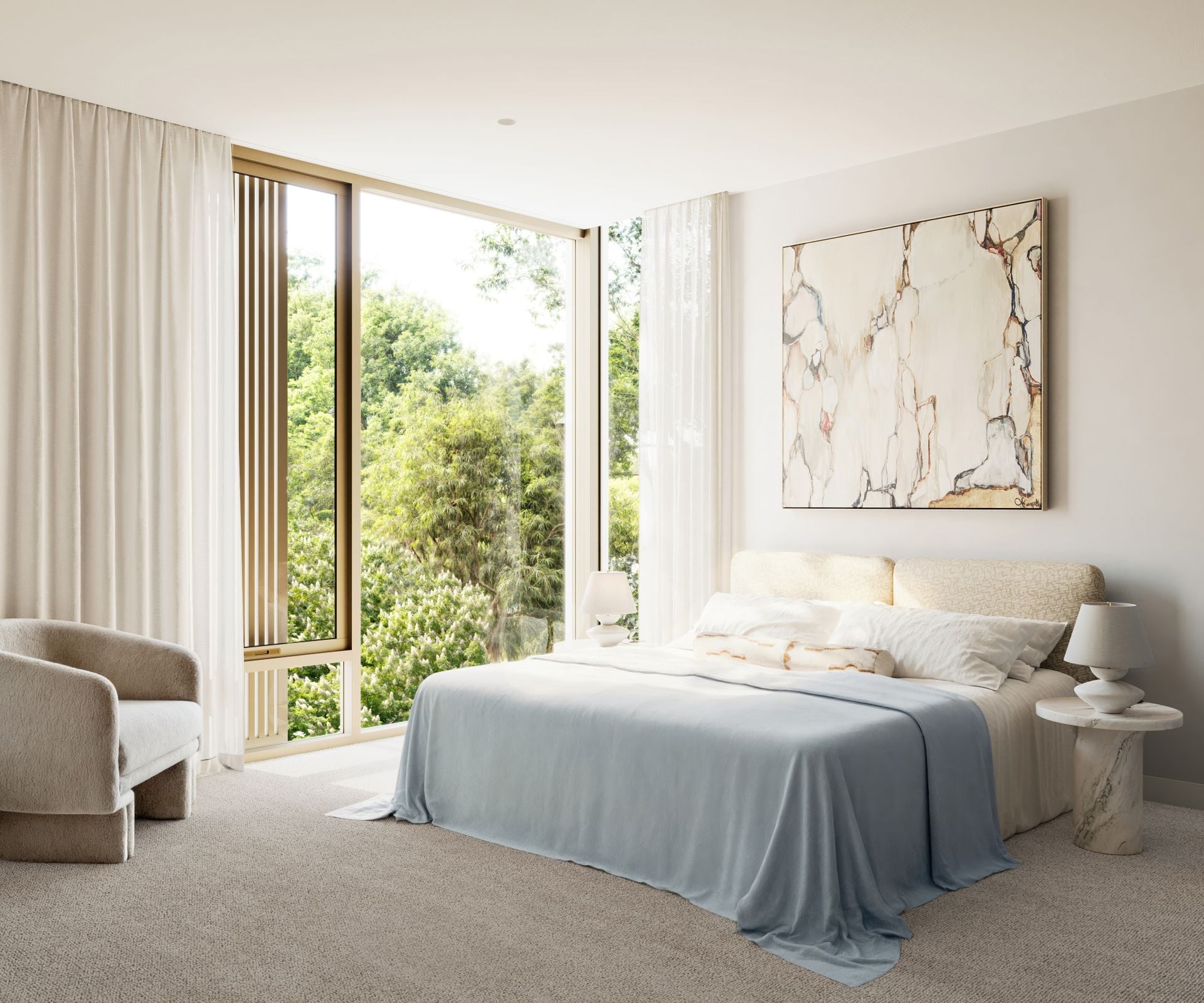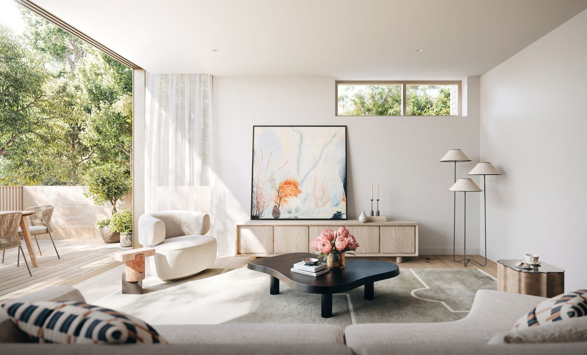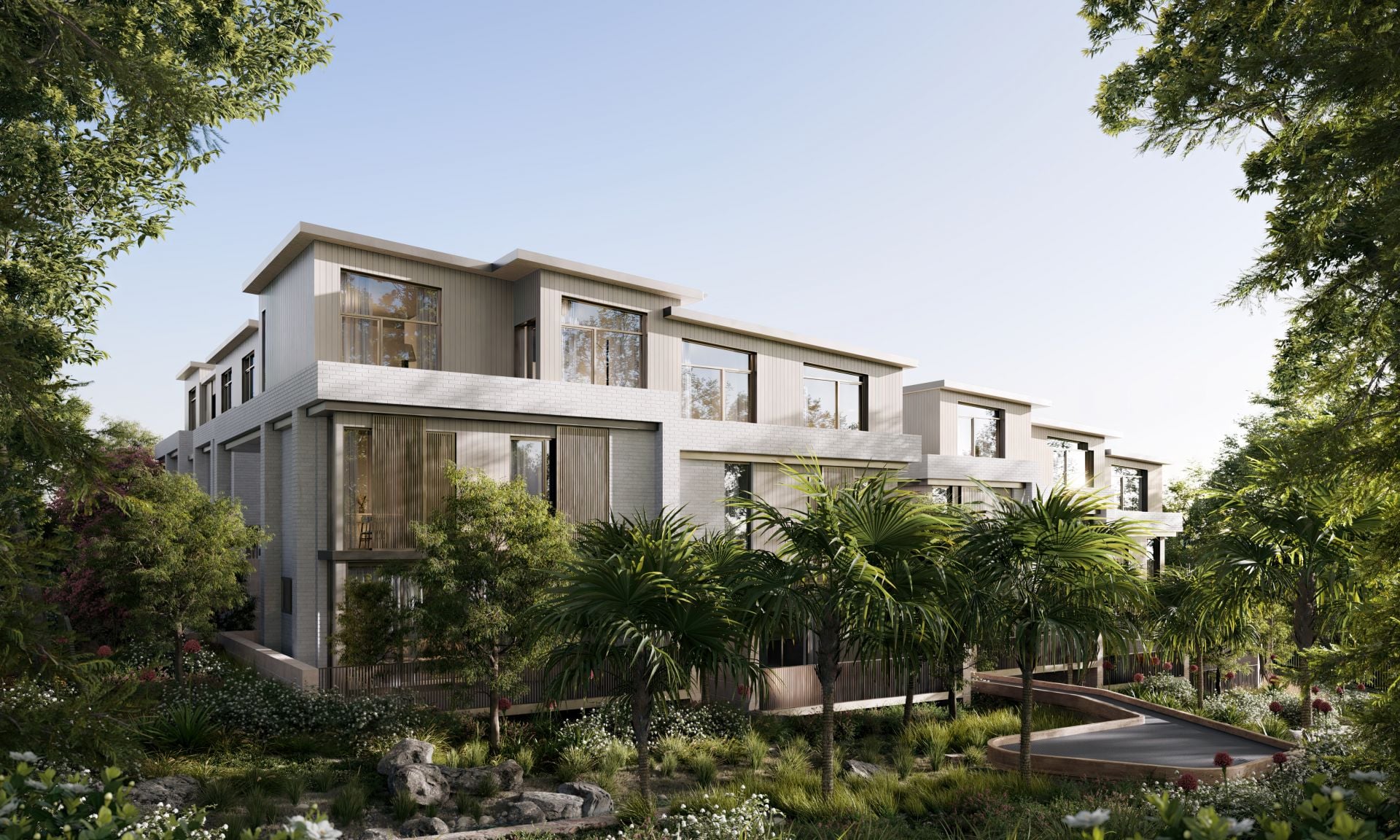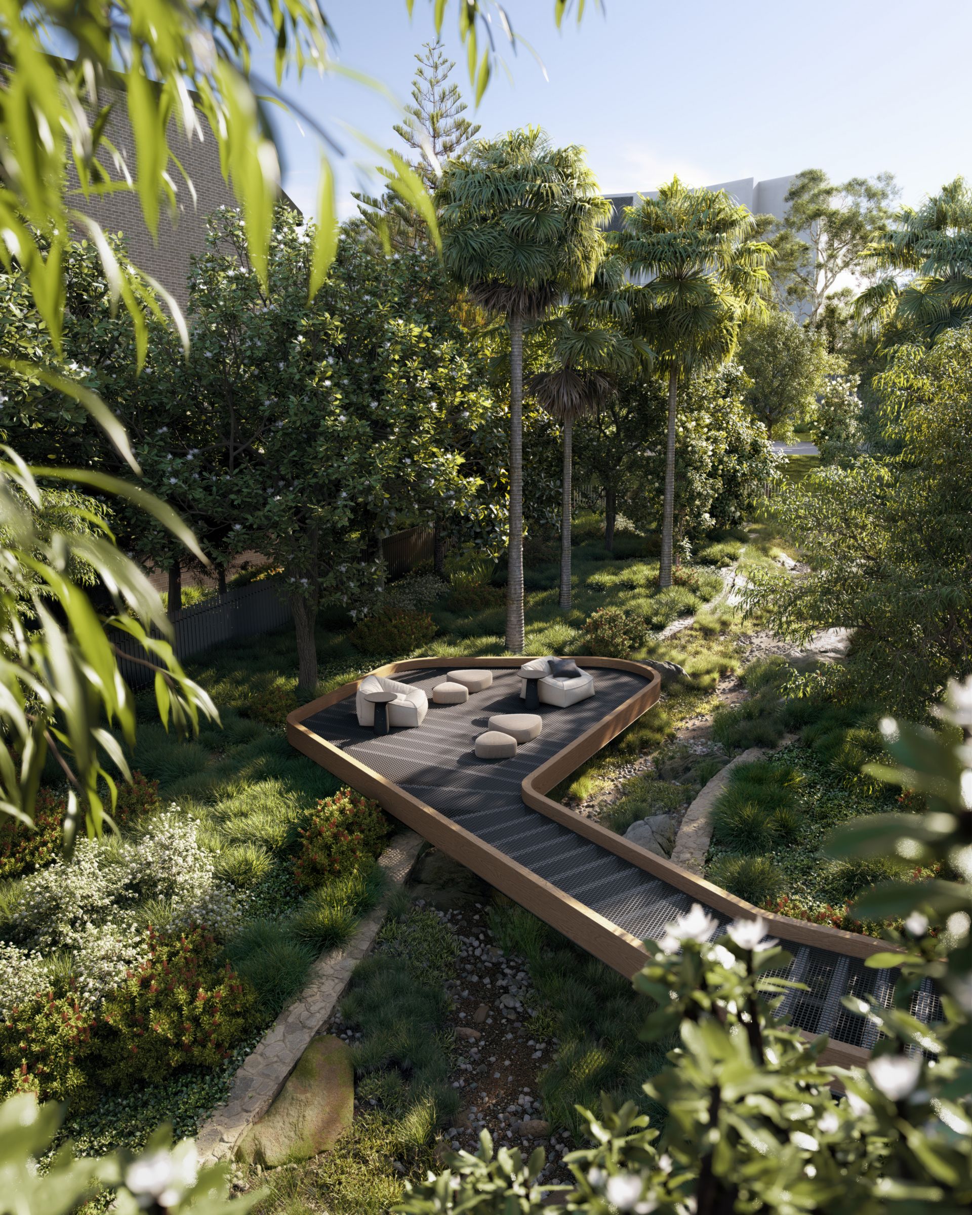 Sublime corners for relaxation and quiet contemplation have been purposefully woven into the landscaped communal spaces, shaded by a canopy of established trees. Wander along the pathway connecting the residences to the natural surroundings, natural creek bed and raised boardwalk where you’ll find peaceful seating areas to unwind.
