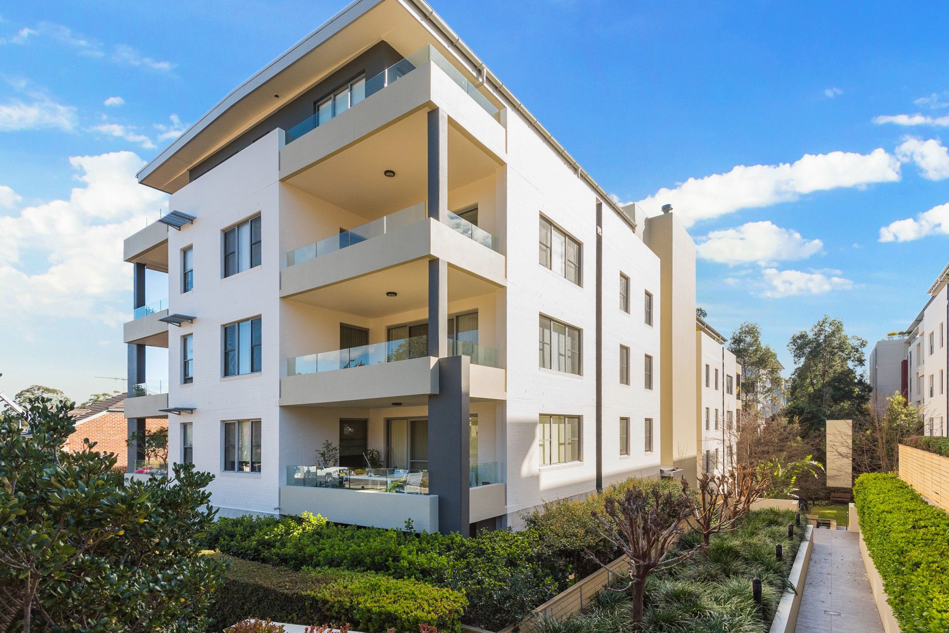 Three generous bedrooms (en-suite and walk-in robe to main) plus study. Open plan kitchen with stone bench tops adjoins the delightful entertaining are which leads to alfresco living .Lovely communal gardens and BBQ facilities. Security side by side parking with storage unit with power. 400 metres walk to station. Killara High School catchment area.