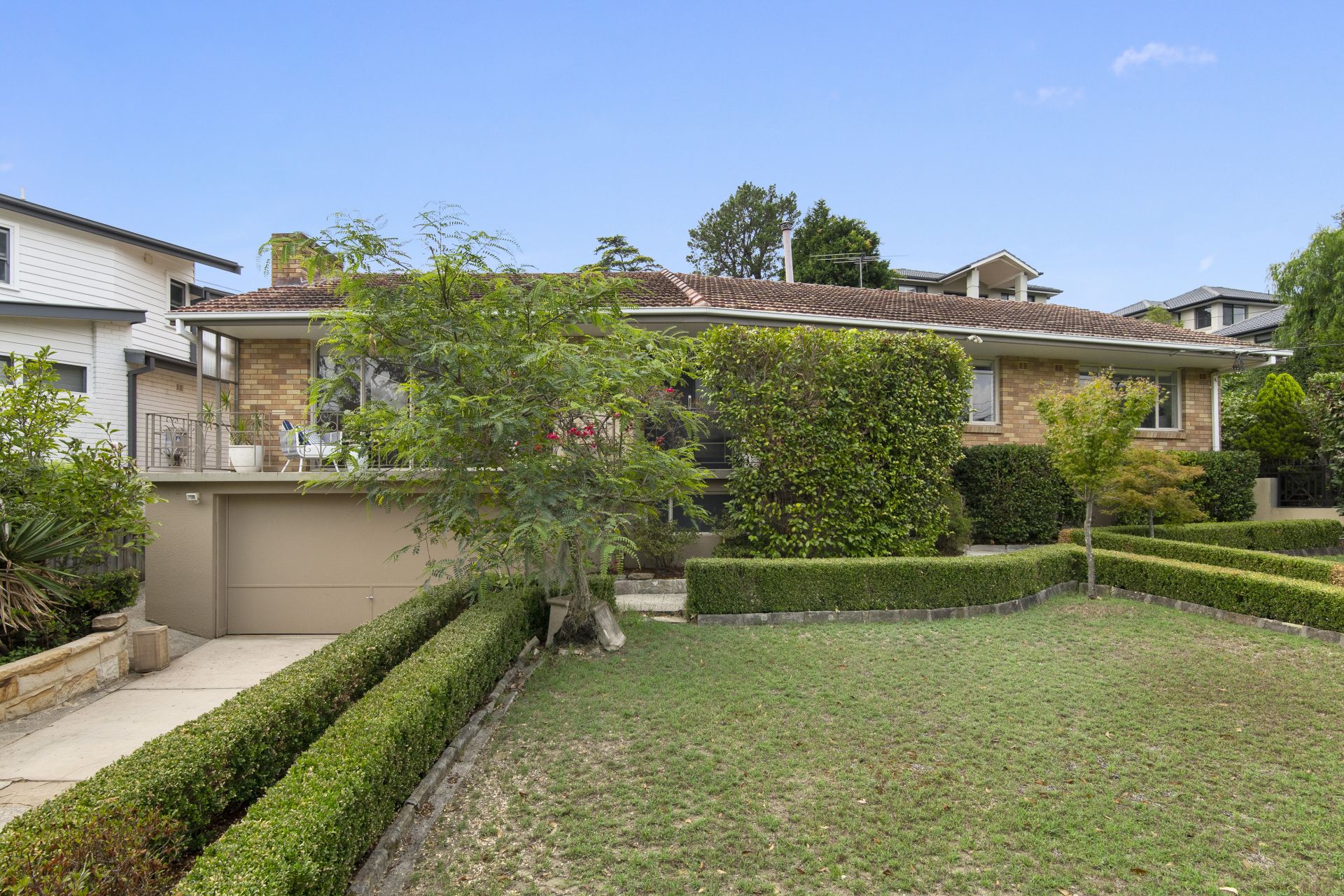 Priced for immediate sale. Appealing 1960's full brick single level residence in exclusive location. Beautiful garden block basking in the sun.